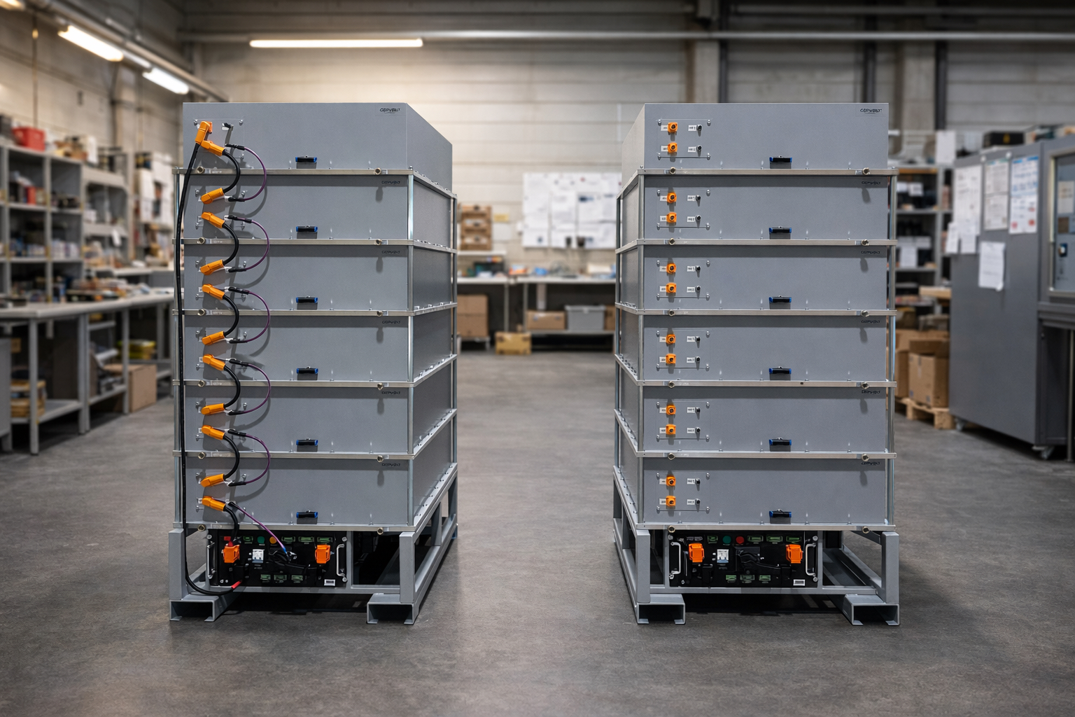 Um den steigenden Anforderungen an Produktionsvolumen und Qualitätsstandards gerecht zu werden, hat GEPVOLT am Standort Hilden (Nordrhein-Westfalen) eine eigene Fertigungsanlage für stationäre Batteriespeichersysteme und Containerlösungen aufgebaut. Mit dieser Investition sichern wir nicht nur die volle Kontrolle über zentrale Produktionsschritte, sondern schaffen auch die Grundlage für eine deutlich schnellere und unabhängige Projektabwicklung – flexibel, effizient und mit